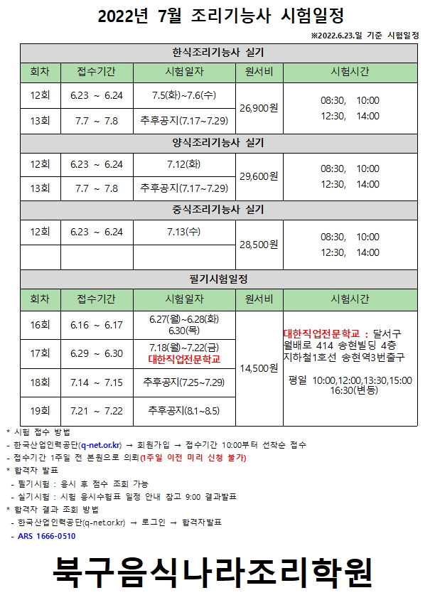 2022년 7월 조리사 시험일정입니다 > 공지사항